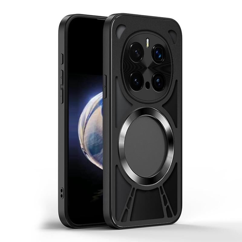 For Honor Magic7 Pro Cooling Hollow Metal Holder MagSafe Phone Case(Black)