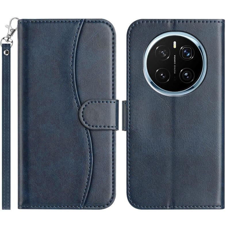 Θήκη τηλεφώνου For Honor Magic7 Pro Διπλωμένη σε σχήμα S από δέρμα (Ναυτικό μπλε)