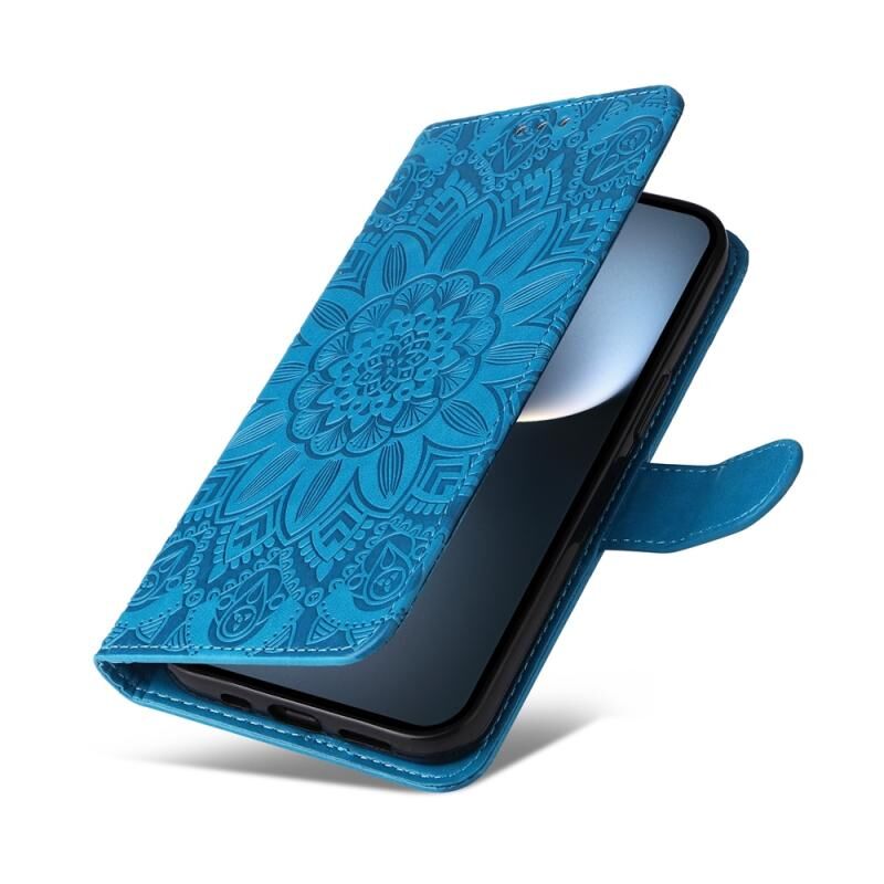 Θήκη τηλεφώνου For Honor Magic7 Pro με ανάγλυφο δέρμα ηλίανθου (Μπλε)
