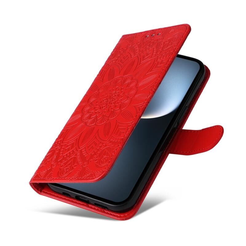 Θήκη τηλεφώνου For Honor Magic7 Pro με ανάγλυφο δέρμα ηλίανθου (Κόκκινο)