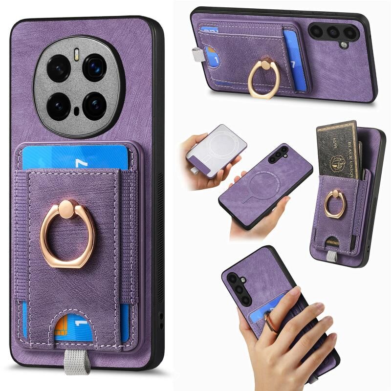 Για Honor Magic7 Pro Retro Splitable μαγνητική κάρτα τσάντα τσάντα δέρμα τηλέφωνο υπόθεση (μωβ)