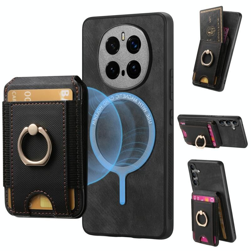 Για Honor Magic7 Pro Retro Splitable Μαγνητική Stand κάρτα τσάντα δερμάτινη θήκη τηλεφώνου (Μαύρο)
