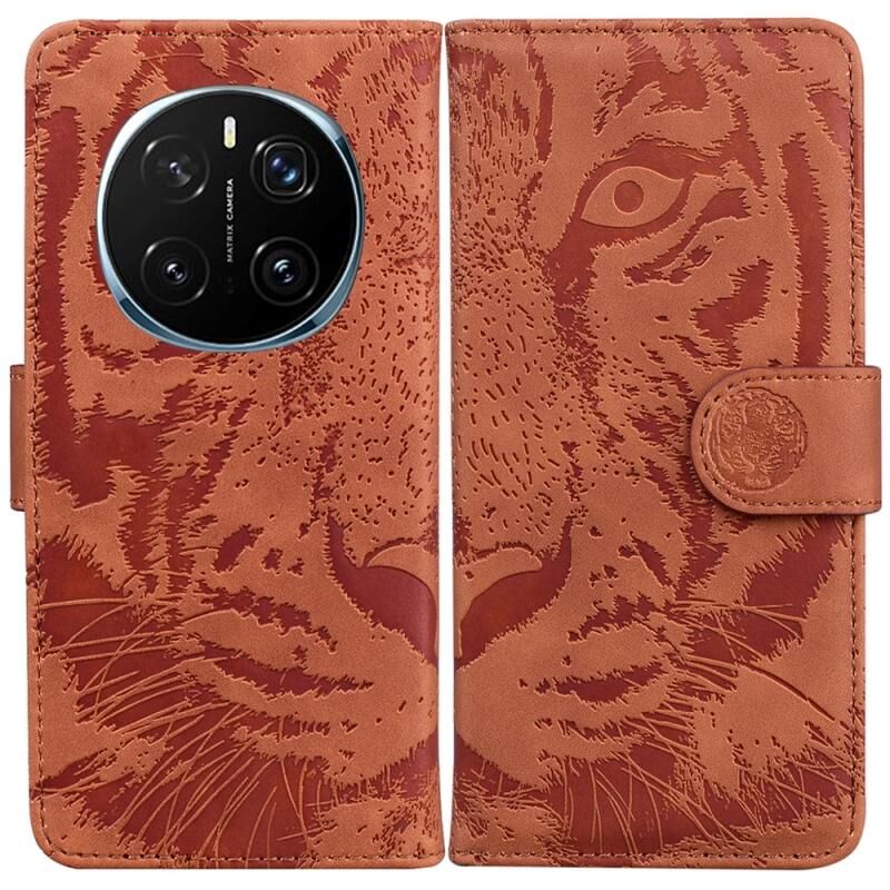Θήκη τηλεφώνου από δέρμα με σχέδιο Tiger Embossing Flip για Honor Magic7 Pro (Πράσινο)