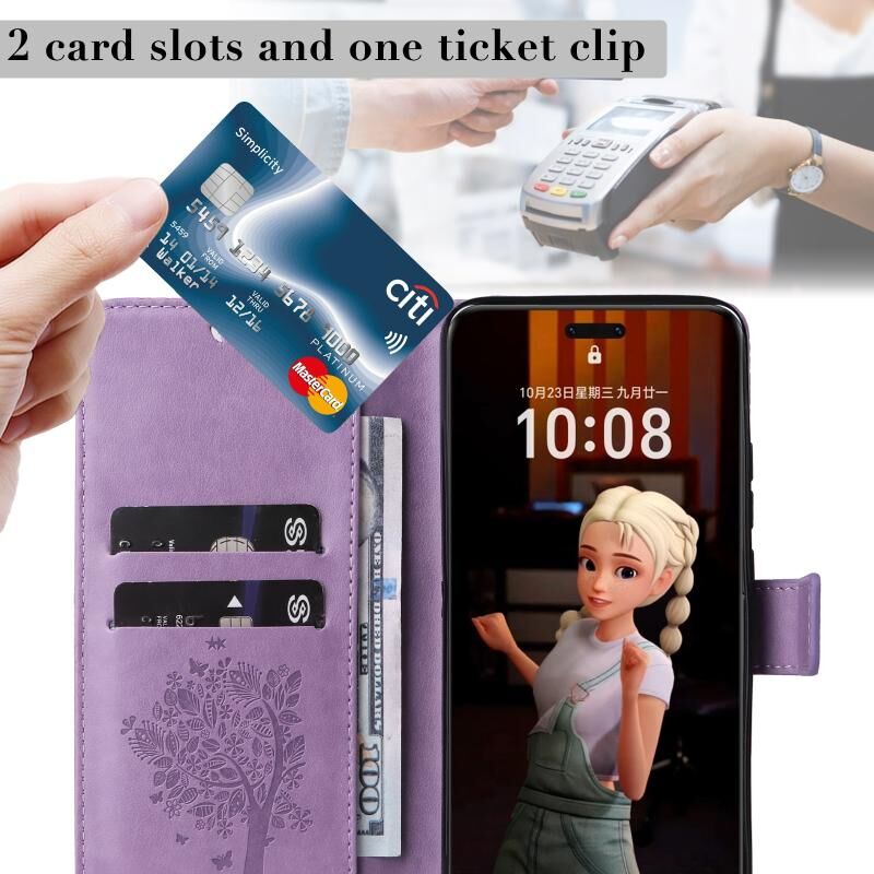 4. Λειτουργία Πορτοφολιού: Η δερμάτινη θήκη είναι εξοπλισμένη με υποδοχές καρτών για την τοποθέτηση καρτών και ενός μικρού ποσού μετρητών.