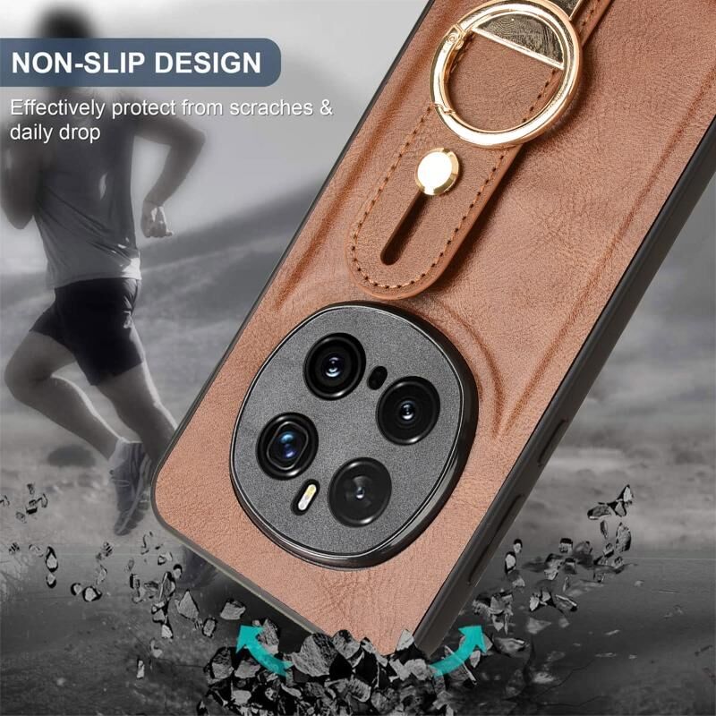 Για Honor Magic7 Pro Wristband δέρμα πίσω υπόθεση τηλεφώνου (καφέ)