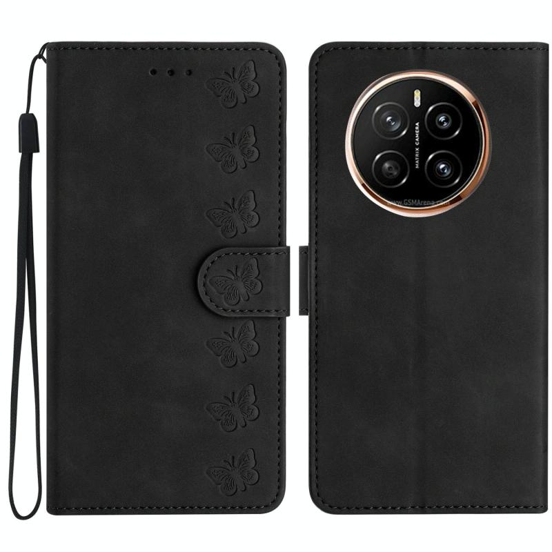 Θήκη τηλεφώνου For Honor Magic7 Επτά Πεταλούδες, Δερμάτινη με ανάγλυφο σχέδιο (Μαύρο)