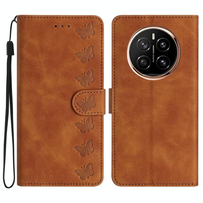 Θήκη τηλεφώνου For Honor Magic7 Επτά Πεταλούδες, Δερμάτινη με ανάγλυφο σχέδιο (Καφέ)