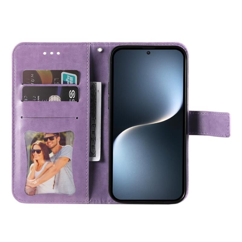Θήκη τηλεφώνου For Honor Magic7 με ανάγλυφο δέρμα επτά πέταλων (Ανοιχτό Μωβ)