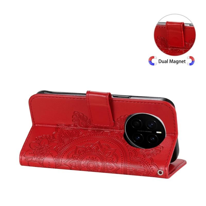 Θήκη τηλεφώνου For Honor Magic7 με ανάγλυφο δέρμα επτά πέταλων (Ανοιχτό Μωβ)