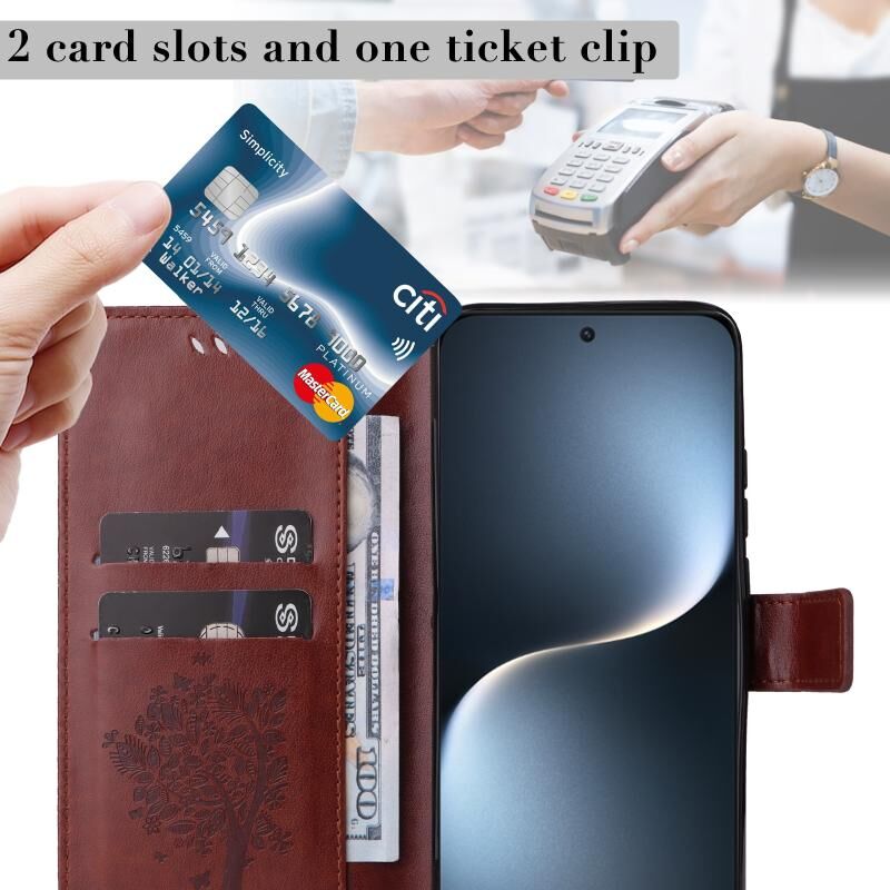 4. Λειτουργία Πορτοφολιού: Η δερμάτινη θήκη είναι εξοπλισμένη με υποδοχές καρτών για την τοποθέτηση καρτών και ενός μικρού ποσού μετρητών.