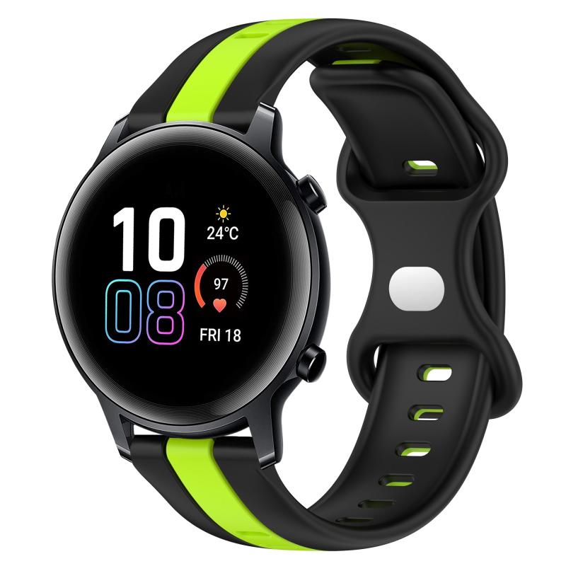For Honor MagicWatch2 42mm 20mm Butterfly Buckle Two-Color Silicone Watch Band(Black+Green)