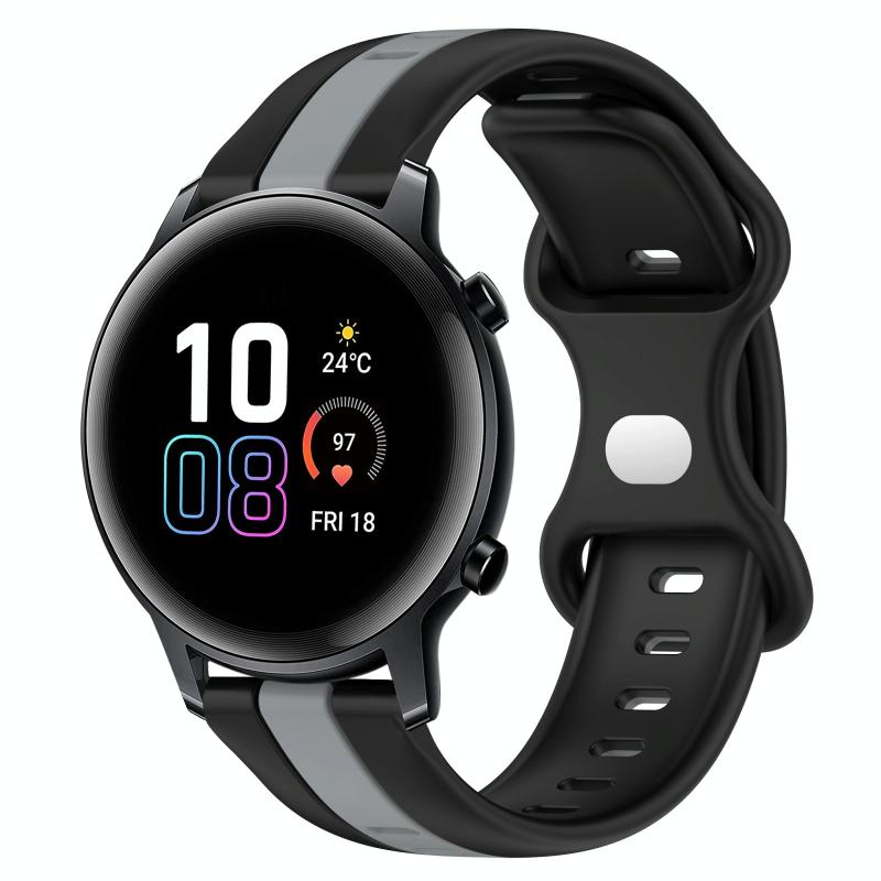 For Honor MagicWatch2 42mm 20mm Butterfly Buckle Two-Color Silicone Watch Band(Black+Grey)