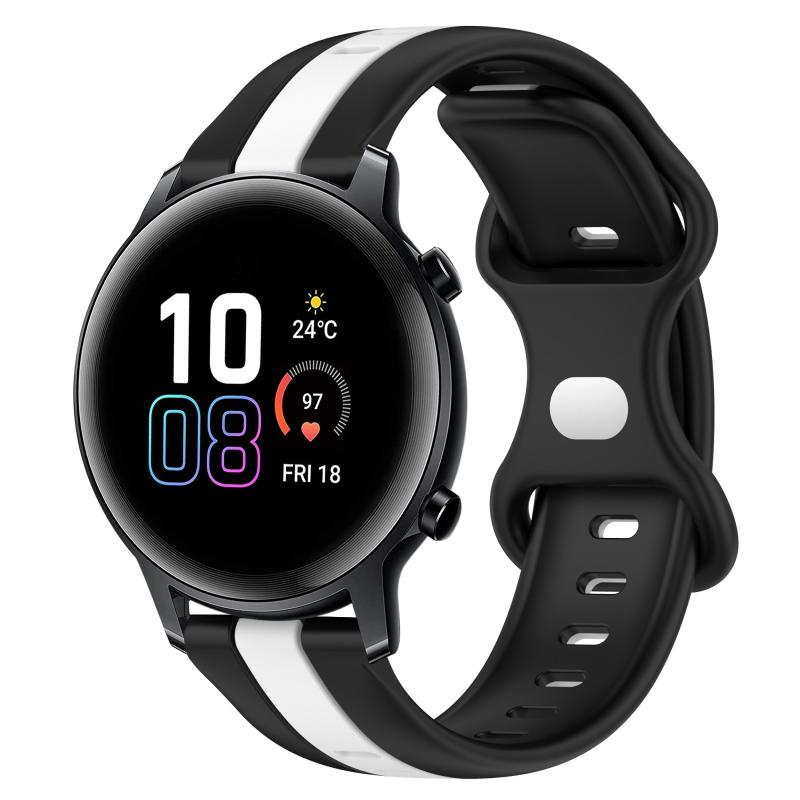 For Honor MagicWatch2 42mm 20mm Butterfly Buckle Two-Color Silicone Watch Band(Black+White)