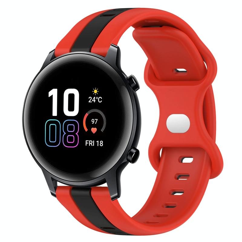 For Honor MagicWatch2 42mm 20mm Butterfly Buckle Two-Color Silicone Watch Band(Red+Black)