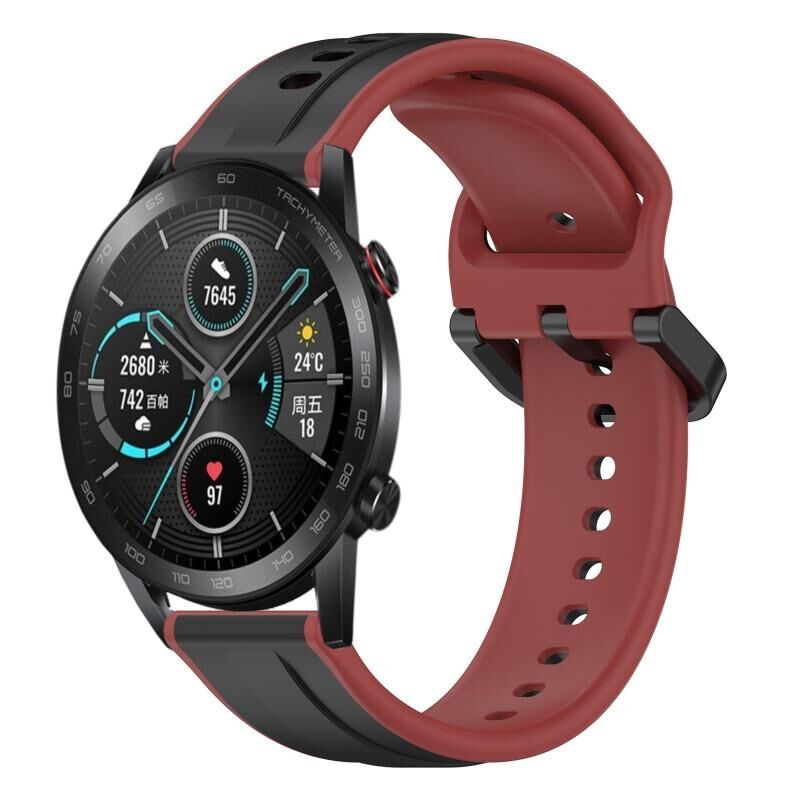 Για το Honor MagicWatch2 42mm 20mm κυρτό βρόχο σιλικόνης δύο χρωμάτων (μαύρο + κόκκινο)