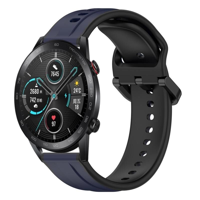 Για την Honor MagicWatch2 42mm 20mm κυρτό βρόχο σιλικόνης δύο χρωμάτων ζώνη ρολογιού (Μπλε μεσάνυχτα + Μαύρο)