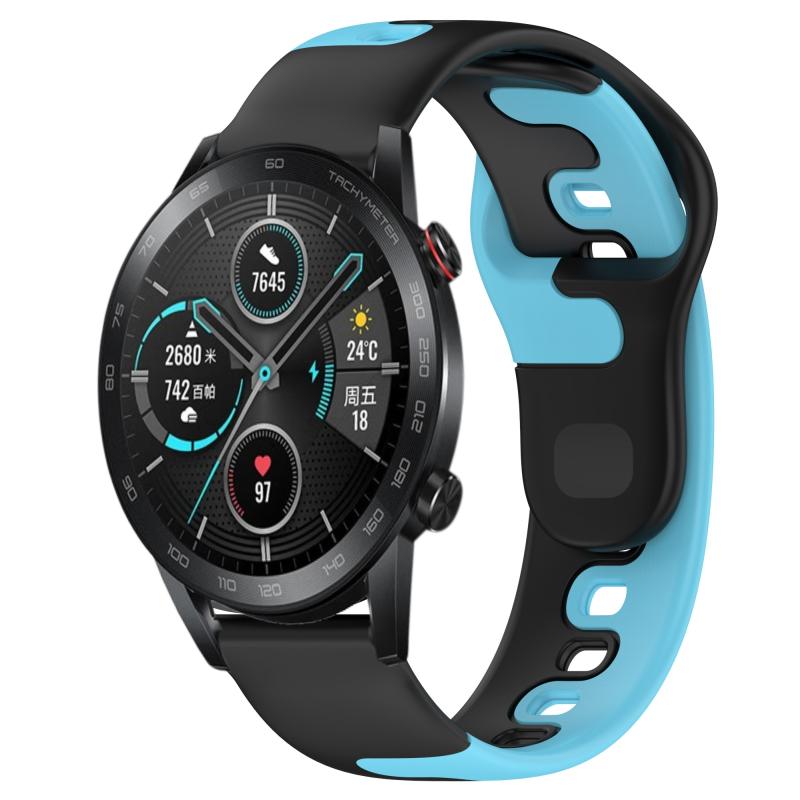 For Honor MagicWatch2 42mm 20mm Double Color Silicone Watch Band(Black+Blue)