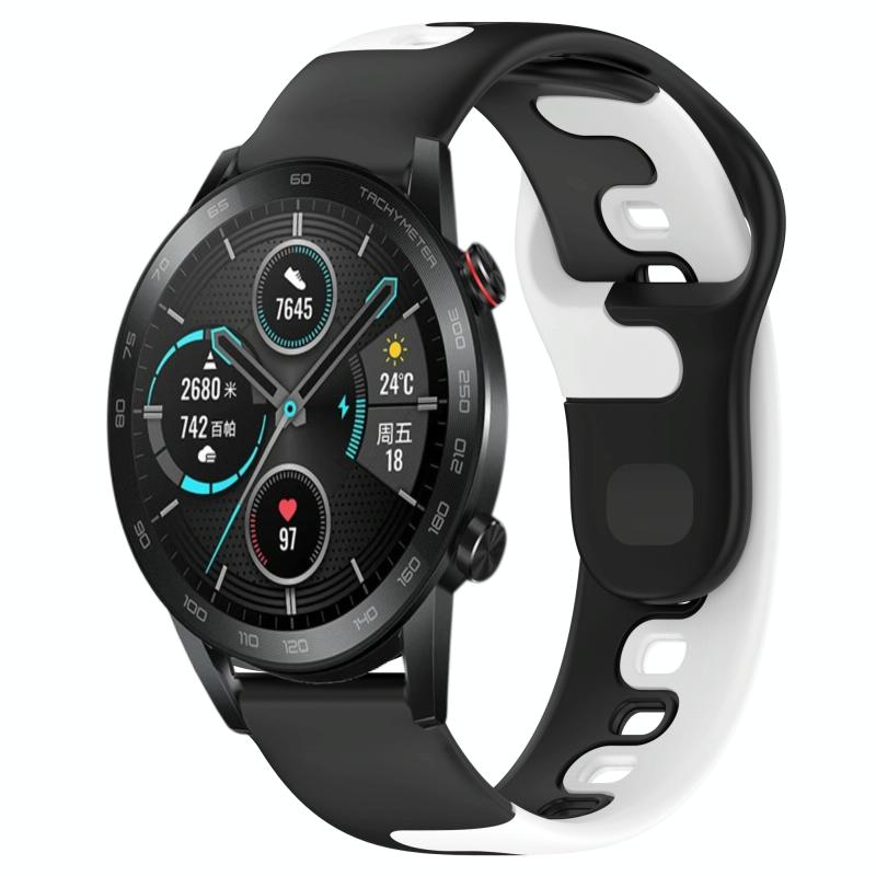 For Honor MagicWatch2 42mm 20mm Double Color Silicone Watch Band(Black+White)