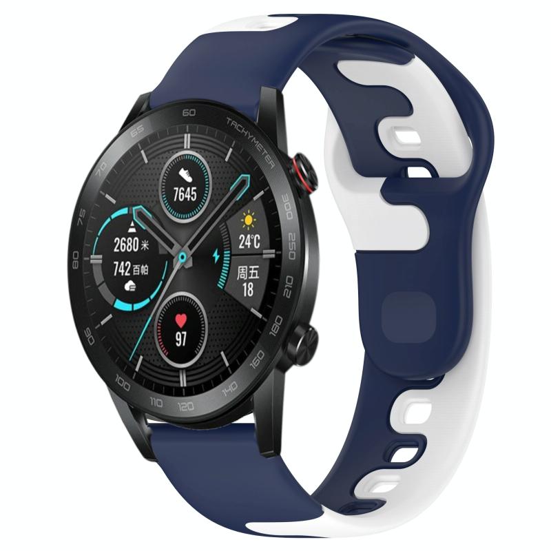 For Honor MagicWatch2 42mm 20mm Double Color Silicone Watch Band(Blue+White)