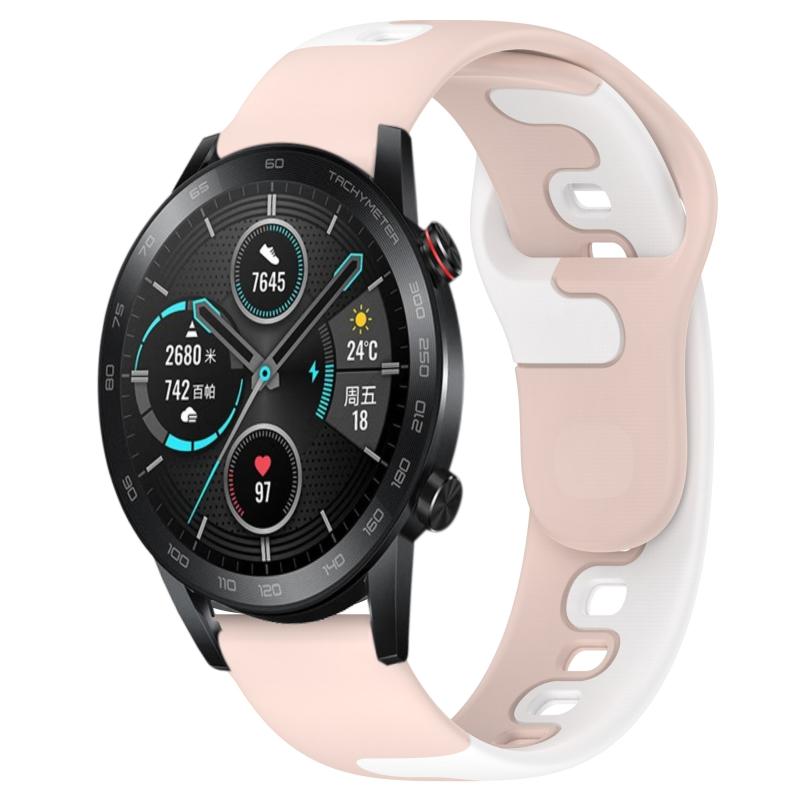 For Honor MagicWatch2 42mm 20mm Double Color Silicone Watch Band(Pink+White)
