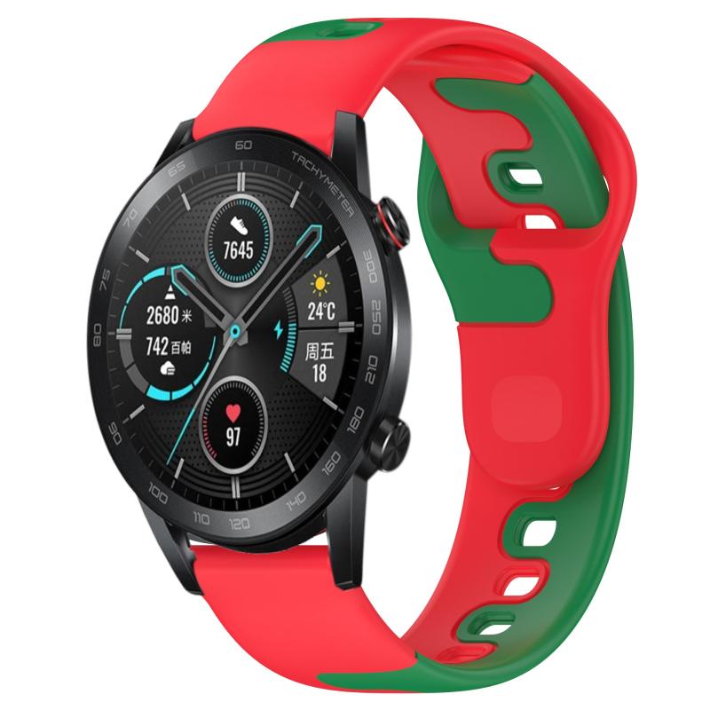 For Honor MagicWatch2 42mm 20mm Double Color Silicone Watch Band(Red+Green)