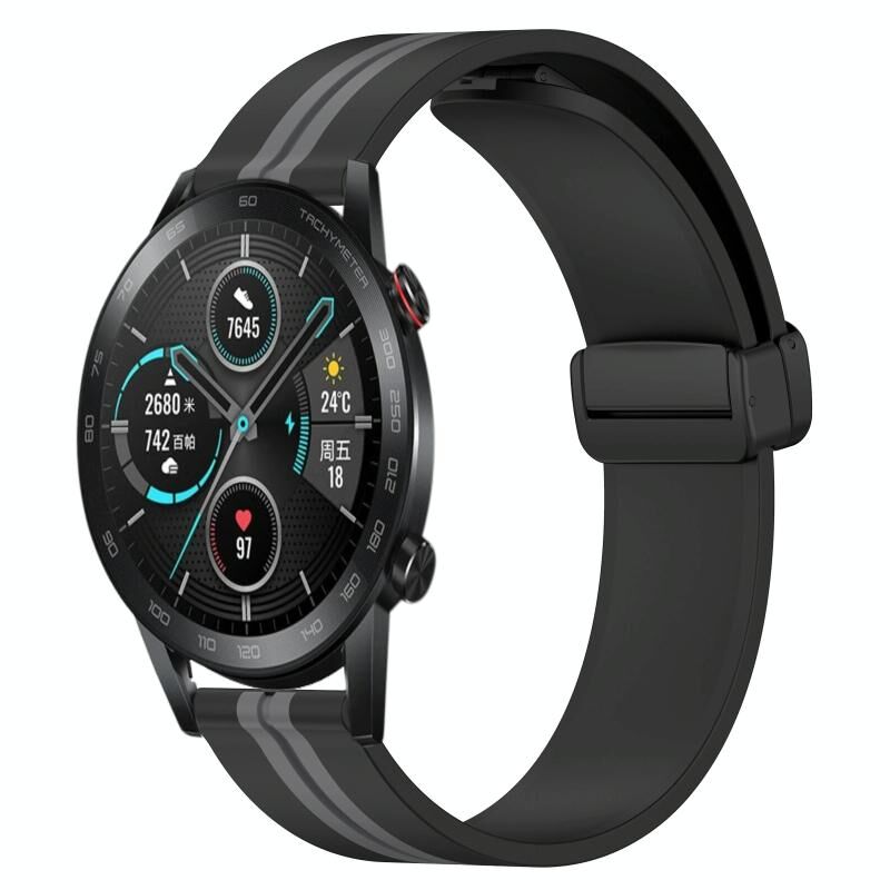 Για Honor MagicWatch2 42mm 20mm Πτυσσόμενο μαγνητικό κούμπωμα ζώνη ρολογιού σιλικόνης (μαύρο + γκρι)