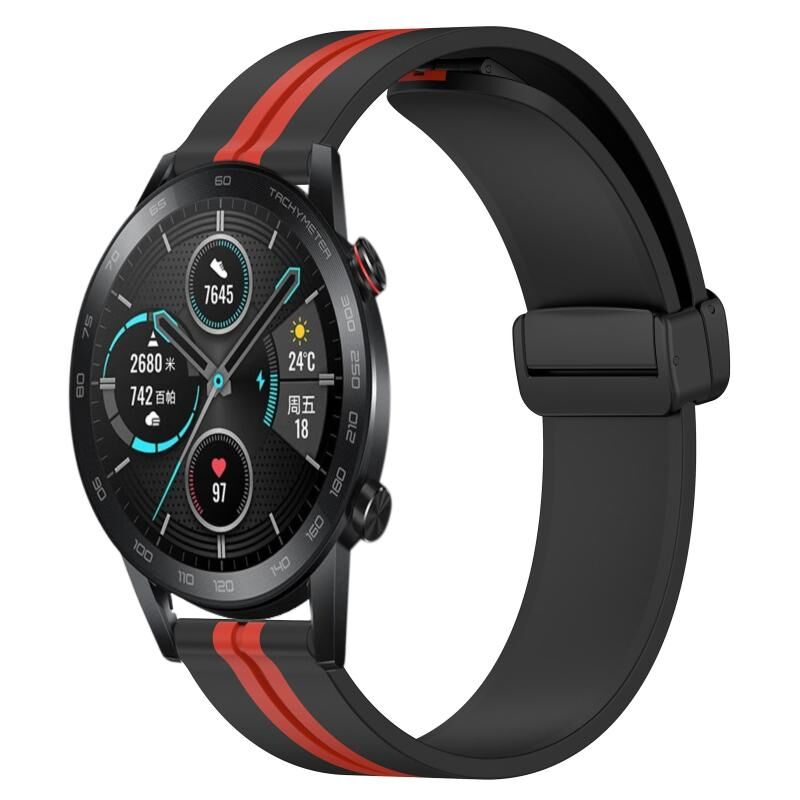 Για Honor MagicWatch2 42mm 20mm Πτυσσόμενο μαγνητικό κούμπωμα ζώνη ρολογιού σιλικόνης (μαύρο + κόκκινο)