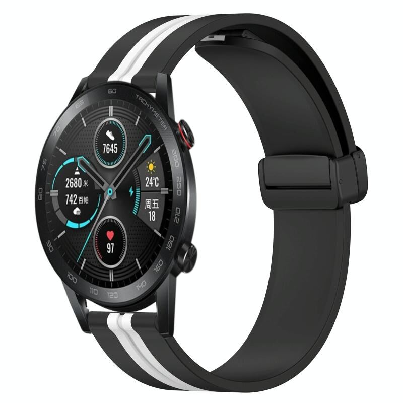Για Honor MagicWatch2 42mm 20mm Πτυσσόμενο μαγνητικό κούμπωμα ζώνη ρολογιού σιλικόνης (μαύρο + λευκό)