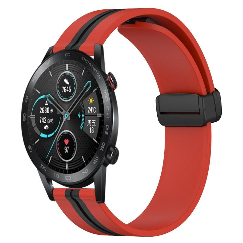 Για Honor MagicWatch2 42mm 20mm Πτυσσόμενο μαγνητικό κούμπωμα ζώνη ρολογιού σιλικόνης (κόκκινο + μαύρο)