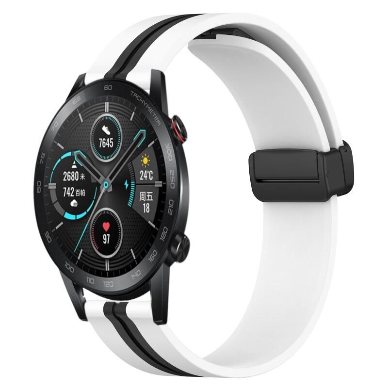Για Honor MagicWatch2 42mm 20mm Πτυσσόμενο μαγνητικό κούμπωμα ζώνη ρολογιού σιλικόνης (λευκό + μαύρο)