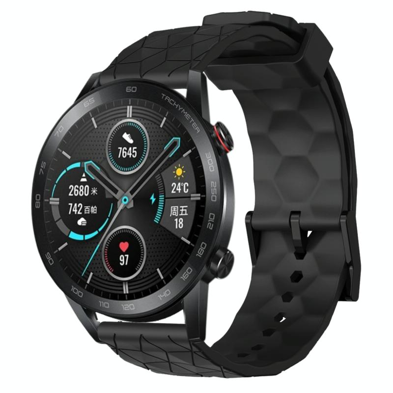 For Honor MagicWatch2 42mm 20mm Football Pattern Solid Color Silicone Watch Band(Black)