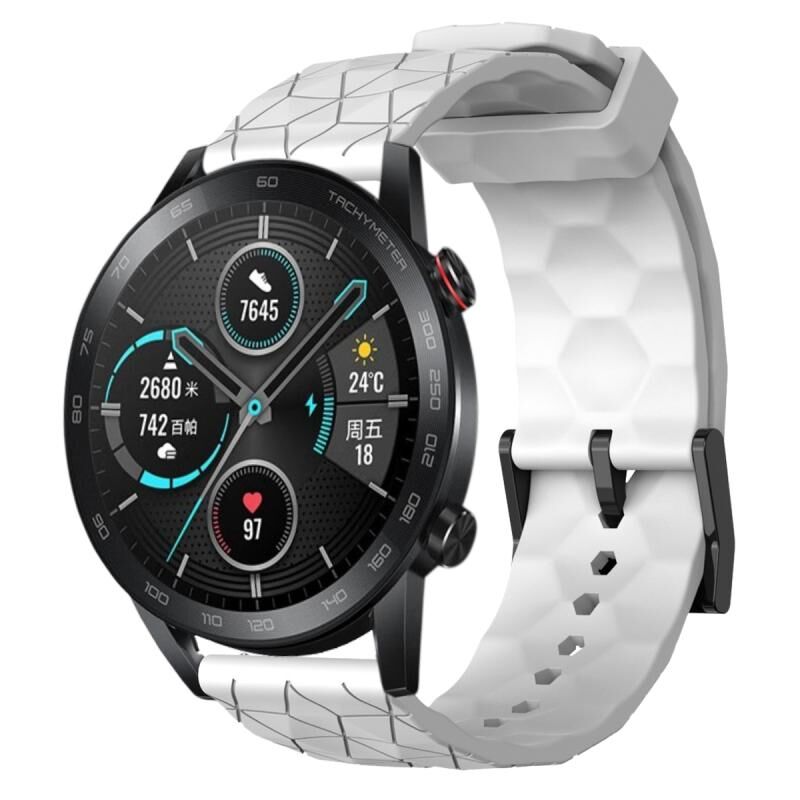 Για Honor MagicWatch2 42mm 20mm ποδόσφαιρο μοτίβο στερεό χρώμα σιλικόνης ρολόι μπάντα (λευκό)