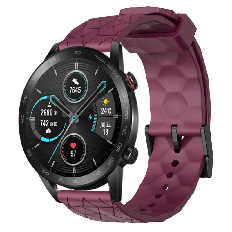 Για Honor MagicWatch2 42mm 20mm ποδοσφαιρικό μοτίβο στερεό χρώμα σιλικόνης ρολόι μπάντα (κόκκινο κρασί)