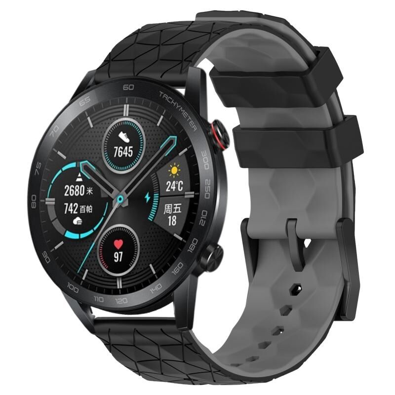 Για Honor MagicWatch2 42mm 20mm ποδοσφαιρικό μοτίβο δύο χρωμάτων σιλικόνης ρολόι μπάντα (μαύρο + γκρι)