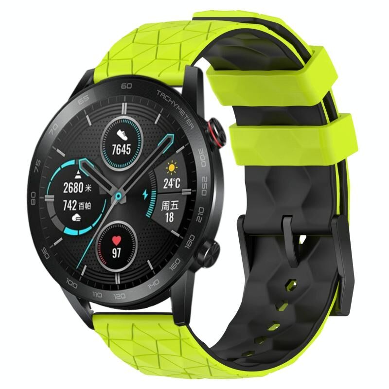 Για Honor MagicWatch2 42mm 20mm ποδοσφαίρου μοτίβο δύο χρωμάτων σιλικόνης ρολόι μπάντα ρολογιού (πράσινο χρώμα + μαύρο)