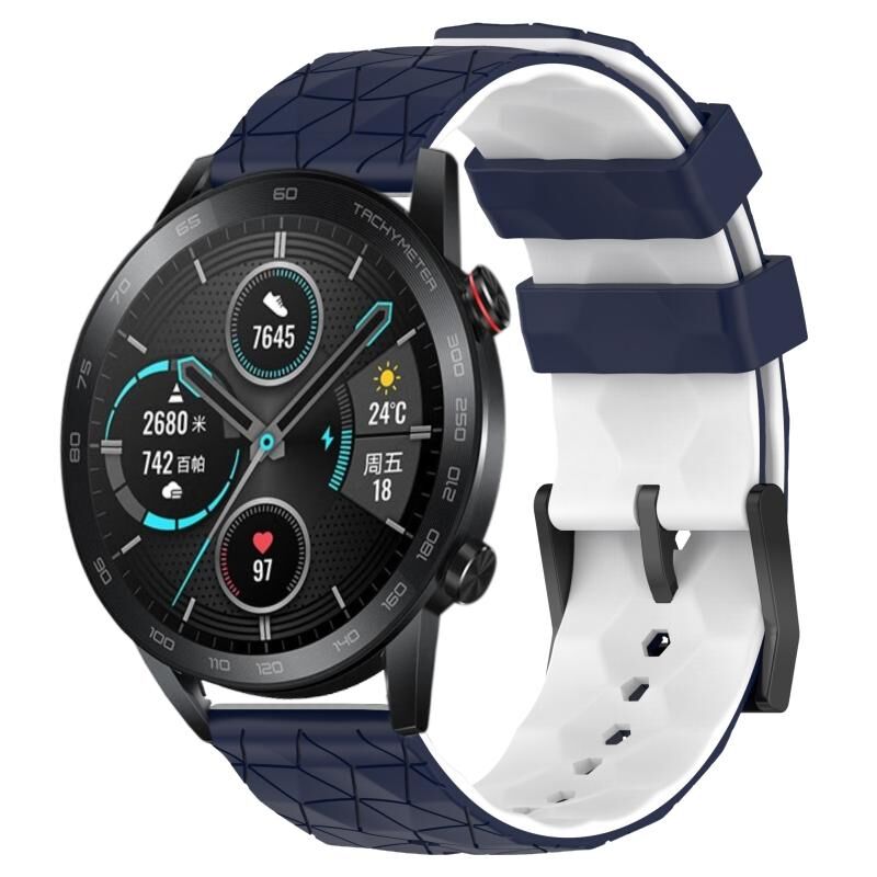 Για Honor MagicWatch2 42mm 20mm ποδόσφαιρο μοτίβο δύο χρωμάτων σιλικόνης ρολόι μπάντα ρολόι (Midnight Blue + Λευκό)