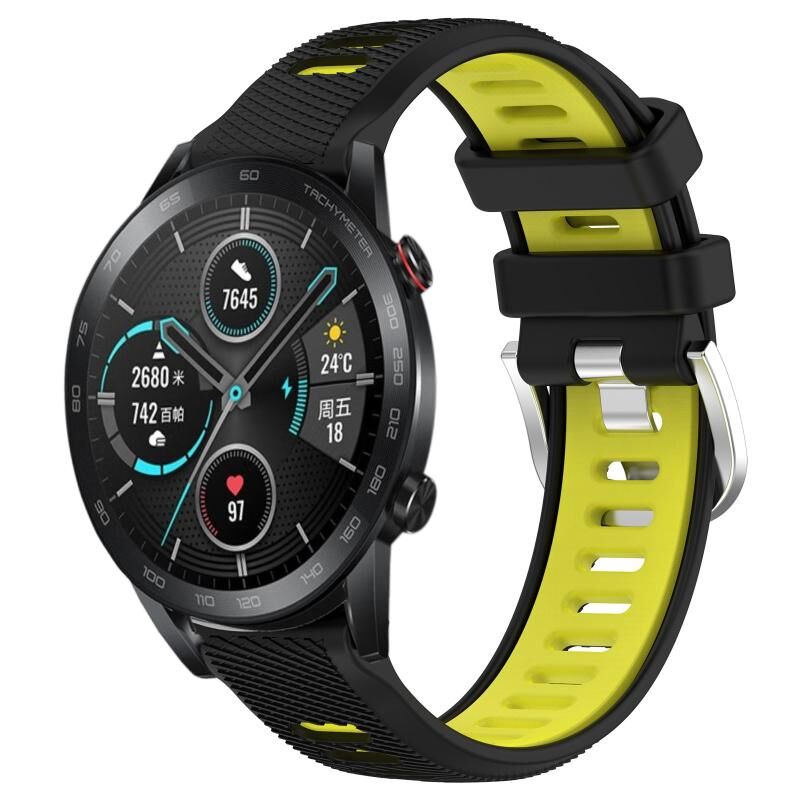 Για Honor MagicWatch2 42mm 20mm Αθλητισμός δύο χρωμάτων χάλυβα πόρπη σιλικόνης ρολόι μπάντα (μαύρο + πράσινο χρώμα)