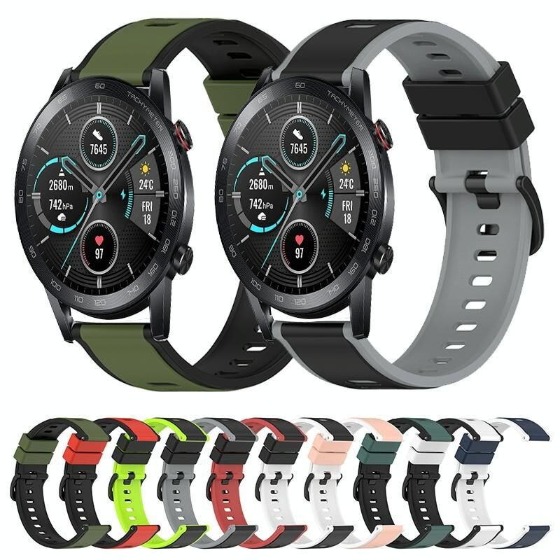 Για Honor MagicWatch2 42mm 20mm Δύο-χρώμα σιλικόνης ρολόι μπάντα ρολόι (μαύρο + λευκό)