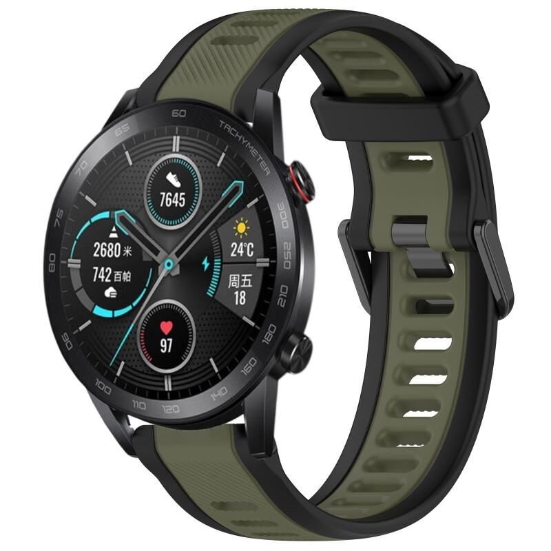 Για Honor MagicWatch2 42mm 20mm Δύο χρώματα υφή σιλικόνης ρολόι μπάντα ρολόι (πράσινο + μαύρο)