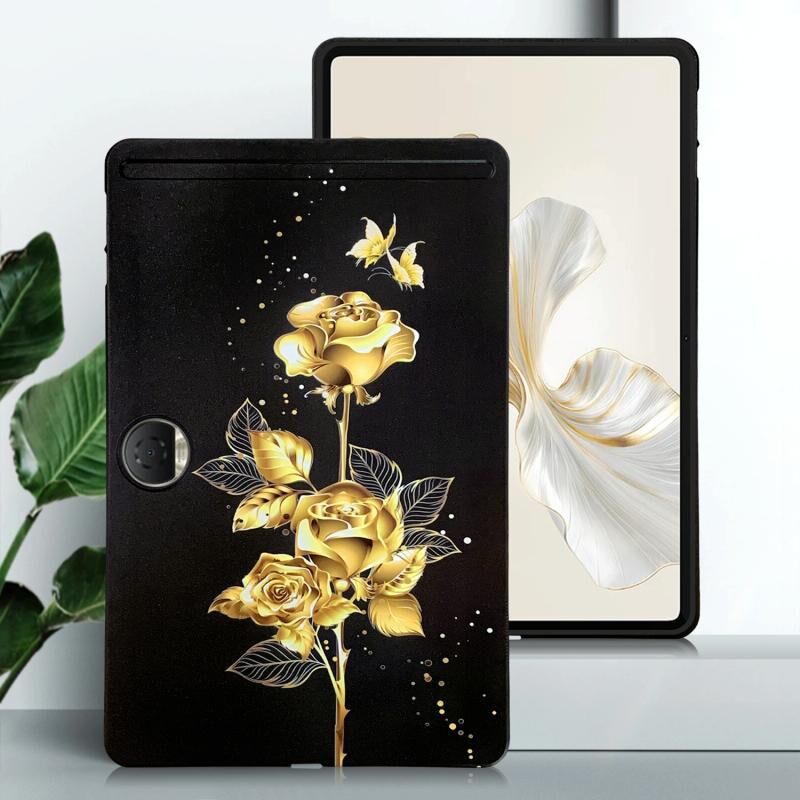 Θήκη για Honor Pad 9, έξυπνη θήκη TPU με σχέδιο ζωγραφικής (Χρυσή Ρόδα)