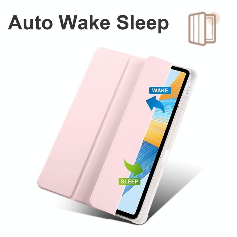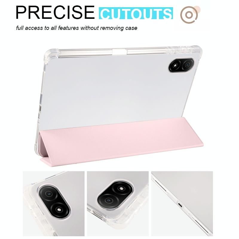 Για το Honor Pad V8 Pro 3-πτυσσόμενο Διαφανές TPU Smart Leather Tablet Case (Ice Pink)