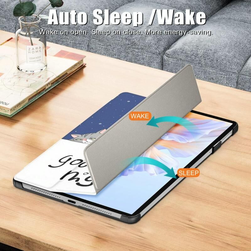 Θήκη Ταμπλέτας από Δέρμα 3 Διπλών για Honor Pad V9 11.5 με Σχέδιο Custer (Αδρανής Γάτα)
