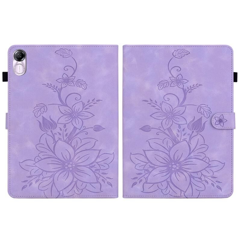 Για Honor Pad X8 Pro / X9 2023 Lily ανάγλυφη δερμάτινη θήκη για tablet (μωβ)