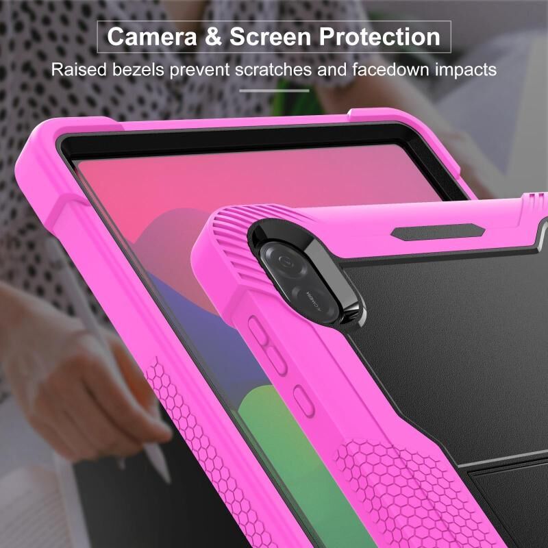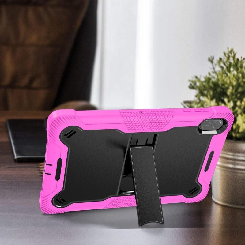 For Honor Pad X8a Shockproof Silicone Hybrid PC Tablet Case with Holder(Black + Rose Red)
