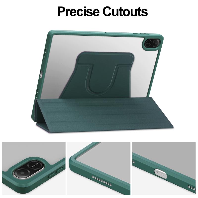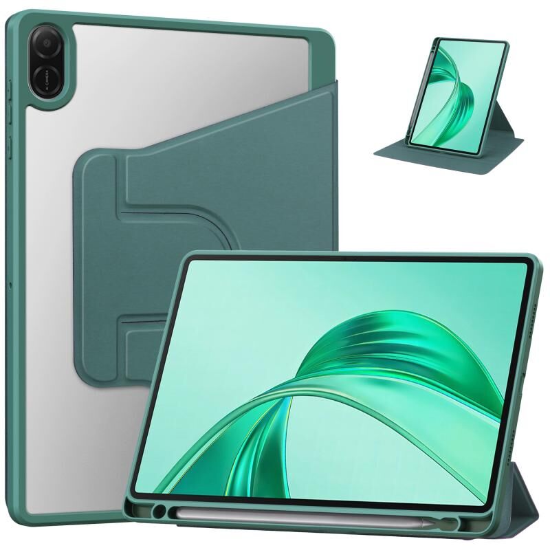 For Honor Pad X8a Tri-Fold Holder Rotation Leather Tablet Case(Deep Green)