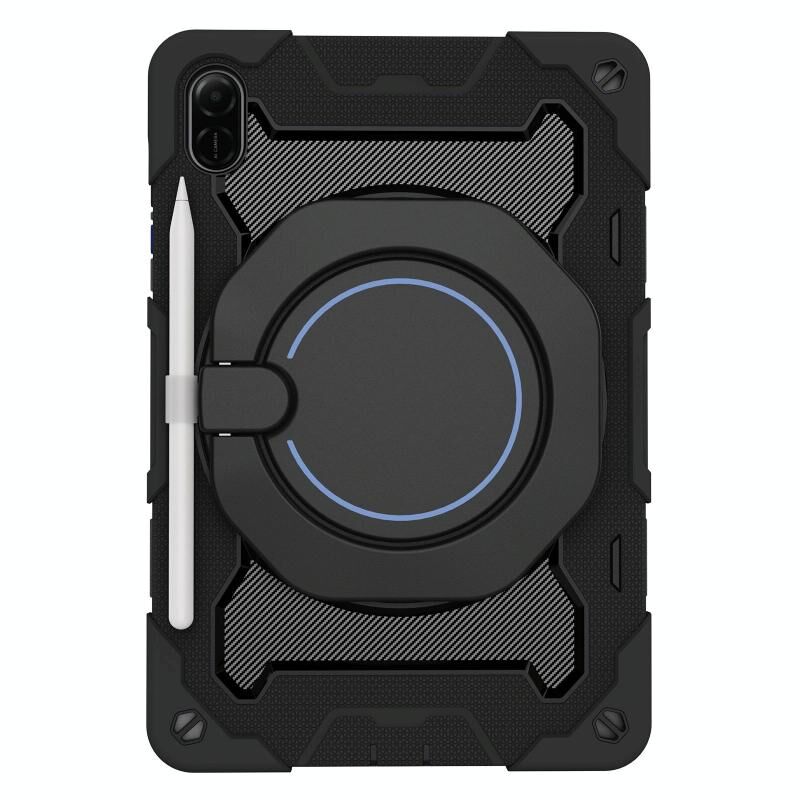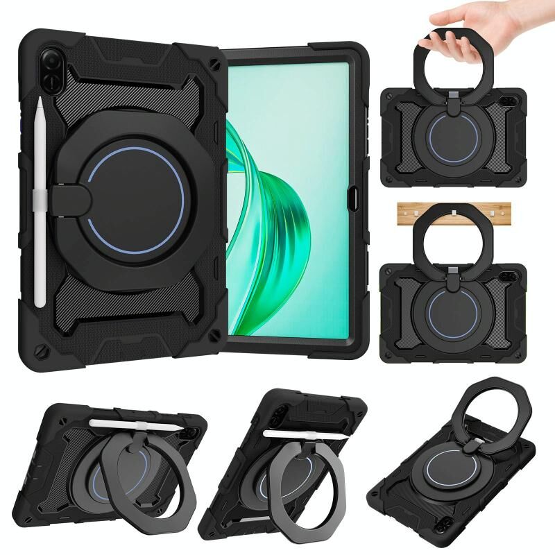 For Honor Pad X9 / X8a Armor Portable Rotating Ring Holder Silicone Tablet Case(Black)