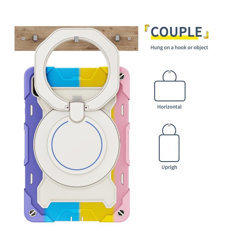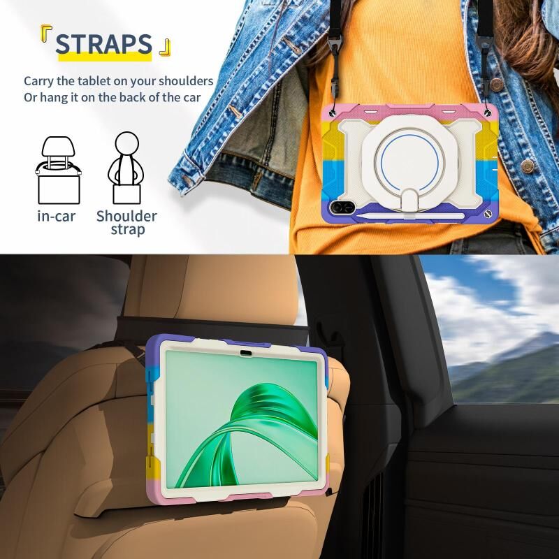 For Honor Pad X9 / X8a Armor Portable Rotating Ring Holder Silicone Tablet Case(Colorful Pink)