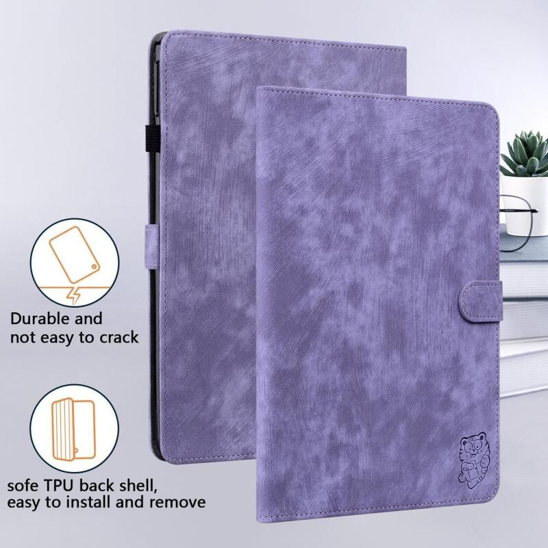 For Honor Pad X9a Embossed Tiger Pattern Leather Tablet Case(Purple)