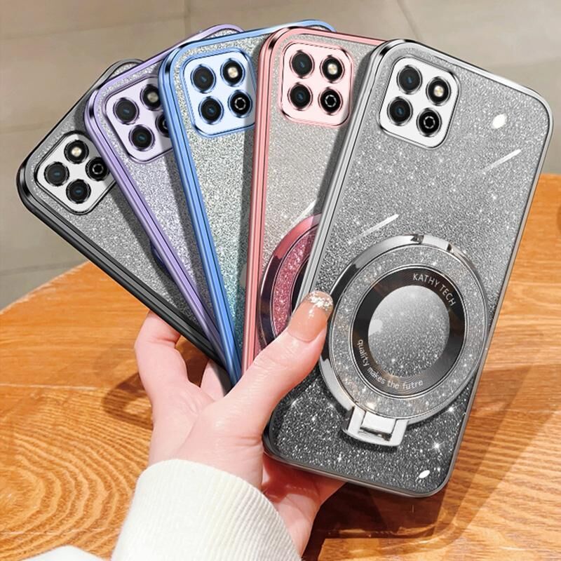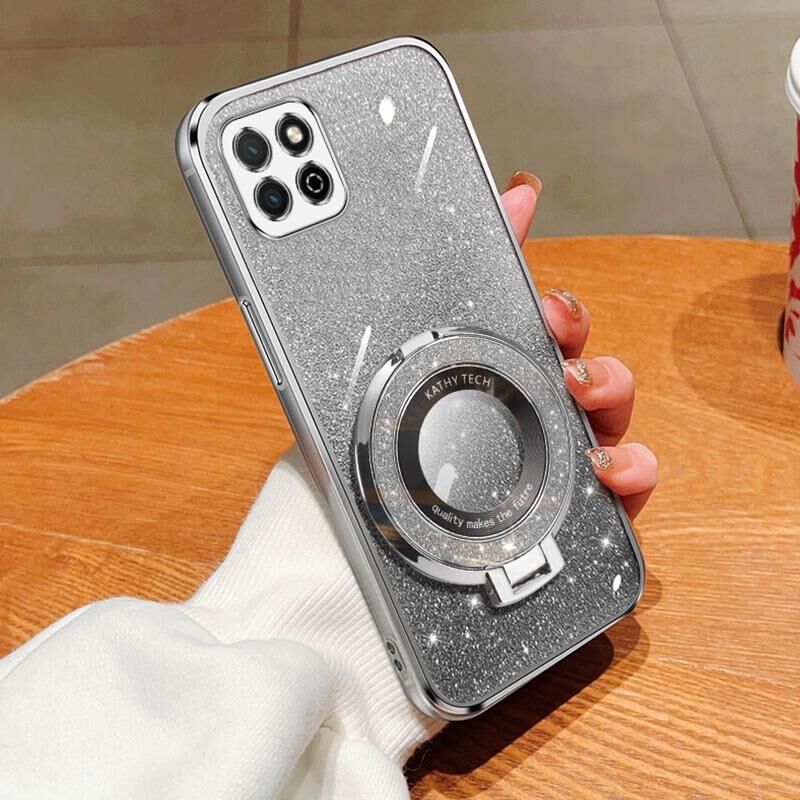 Για το Honor Play 20 επιμεταλλωμένο βαθμιδωτή Glitter στρογγυλή θήκη TPU τηλέφωνο κάτοχος (ασημί)