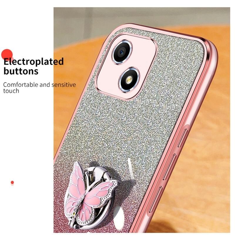 Θήκη κινητού τηλεφώνου TPU για Honor Play 30 με επιμετάλλωση, διαβαθμισμένο γκλίτερ και σχέδιο πεταλούδας (Ροζ)